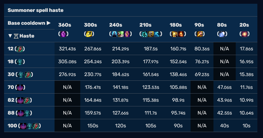 (Table from the Summoner Spell Section of the League of Legends Wiki)