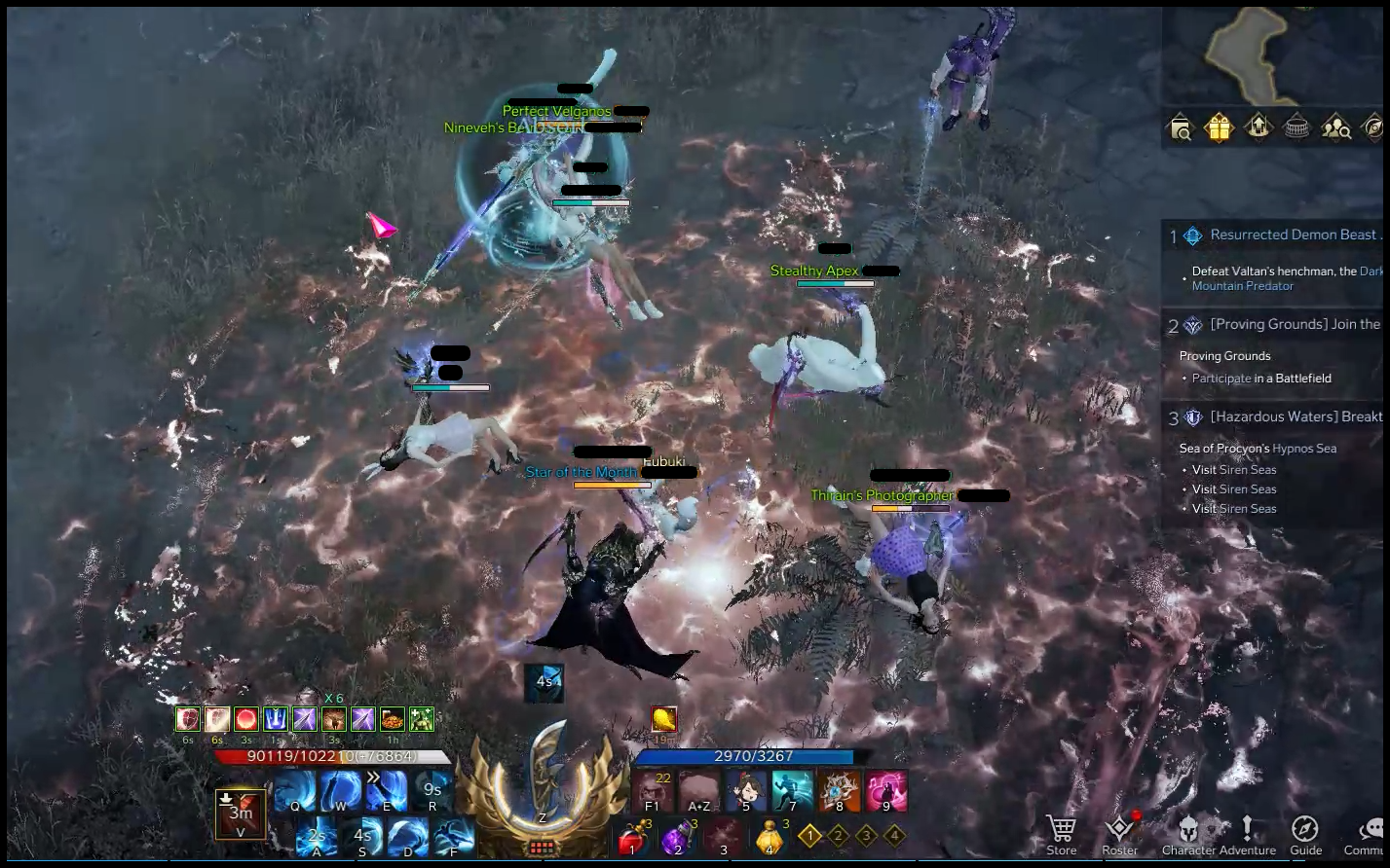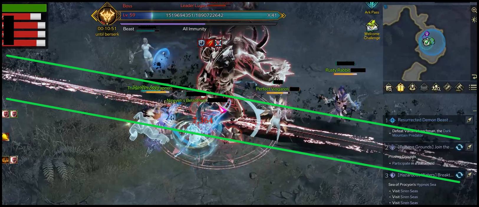 In Gate 1, players will be facing off against Valtan’s underlings, Dark Mountain Predator (Purple Wolf), Leader Lugaru (Red Wolf), and Destroyer Lucas (Blue Wolf). For clarity and simplicity, this guide will refer to them by their respective colors. In Legion Raids, the boss health bar is an important indicator for when major mechanics, usually party wipe skills, are going to happen. Let’s first go through all the main mechanics before we tackle the general attack patterns of the Wolves.