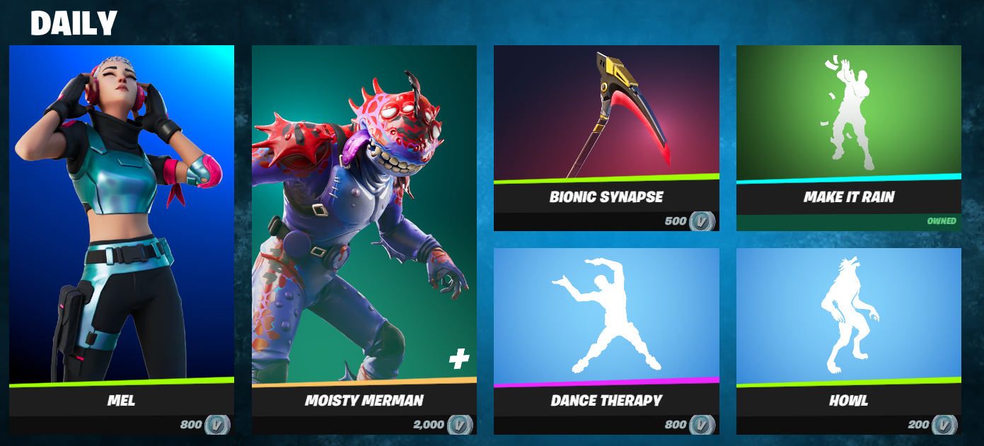 The simplest portion of your shop that you will see when scrolling through the page is your Daily Shop. This Shop is unique since it is the only one in the game that rotates every day. After 24 hours of being up, the Shop changes for everyone and new cosmetics are offered until the next day. The Daily Shop is a good way of getting a skin or emote that you may have missed out on in the past, so make sure to check it every day to see if what you are looking for is there. Do keep in mind, however, that items you already have can also appear in this shop.