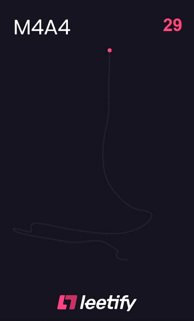 The recoil pattern of the AK-47’s direct counterpart, known as the M4A4, is considerably easier. Just like the AK-47, the spray pattern becomes considerably more difficult in the second half. However, it's missing the crazy twists and turns that the AK-47 offers. Instead, after going back up slightly, there is a sudden drop and twist, which repeats once more at the end of the spray.