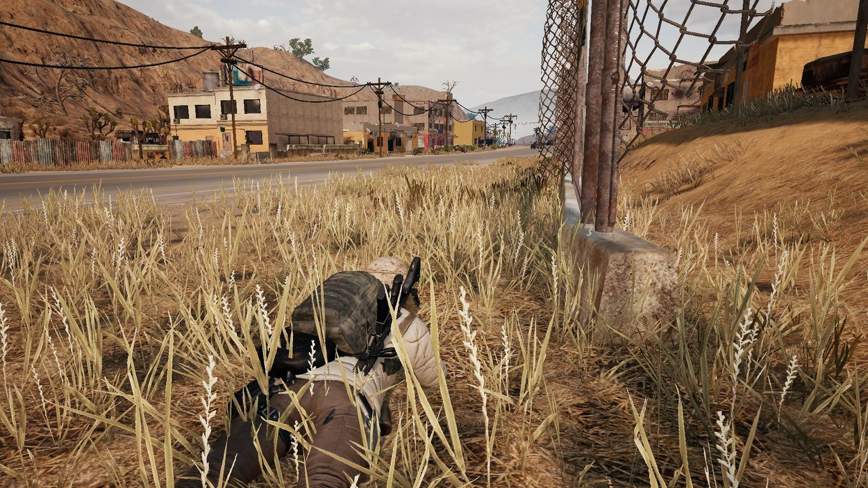 The camera positioned while prone with an overview of the road while it's very hard for other players to see you.