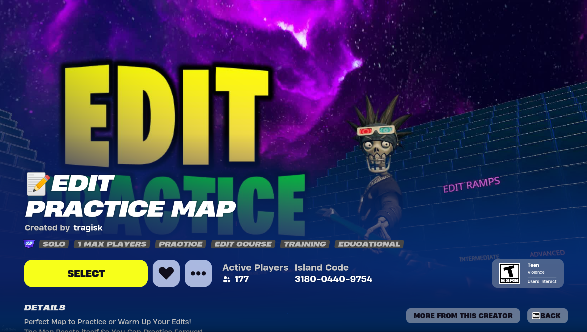 If editing builds is something you find yourself struggling with, look no further than Edit Practice Map. This solo map provides players with countless combinations of builds to edit. When you spawn in, you have the option to change the speed you move at as well, making it perfect for players who are new to building and editing and are just starting to try and take their gameplay to the next level.