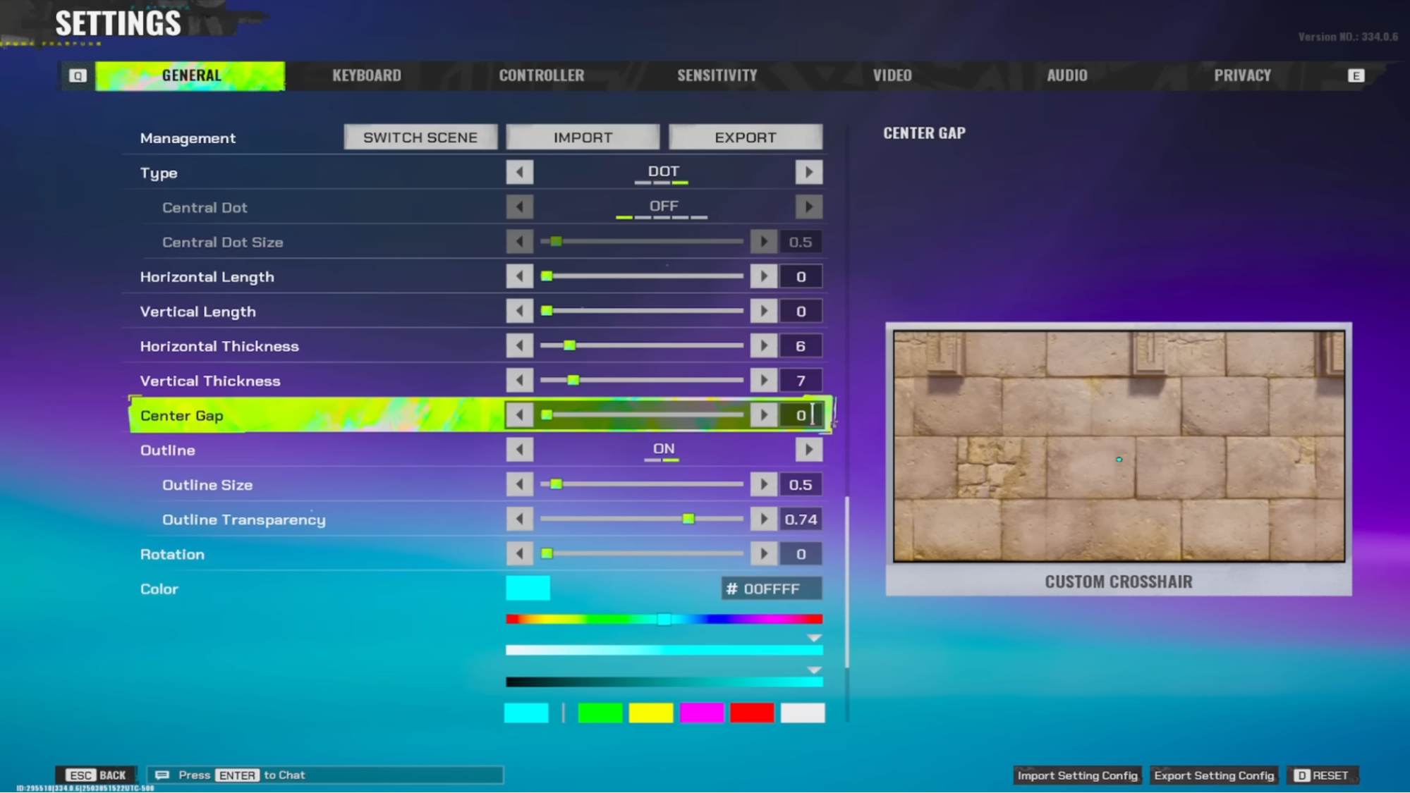 A good crosshair should be simple and static to ensure precision aiming. Avoid using thick or animated crosshairs, as they can be distracting, making it harder to focus on targets. The color of the crosshair is important as well. Bright colors like Cyan, Green, or Magenta stand out on most backgrounds, while Red or White may blend into certain maps, making them harder to see in fast-paced fights, so avoid using those colors for your crosshair.