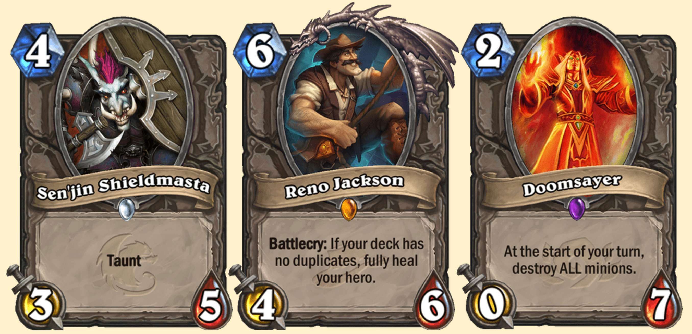 When you are the aggressor, there are many different types of cards that your opponent can attempt to use to stabilize the game state at hand. While every card in itself is unique, at the very least we can go over different types of defensive cards that you’ll likely encounter from opposing control or combo decks that try to survive until late in the game. Generally speaking, these cards can be lumped into three broad categories: taunt minions, healing effects, and removal. Let’s go over each one, from how they’re often used to how you can play around them!