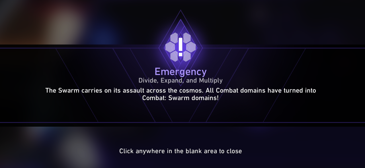 Emergencies are random events that can potentially trigger after each Domain. These effects usually transform existing Domains to Swarm variants. You can also obtain a Sealing Wax of Propagation from Emergencies, which grants you a Propagation Blessing.