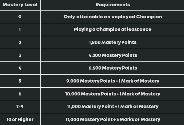 Champion Mastery is a free, very rewarding way to show your dedication and skill with all of your favorite champions. By leveling up, you can show your expertise to others and gain some insight into your teammates’ and opponents’ skill levels. Earning Mastery Points and Marks of Mastery comes down to being effective in matches, and making the most of what your champion can do. By focusing on the fundamentals of your chosen champion and role, you’ll be sure to be flexing your Mastery in no time!