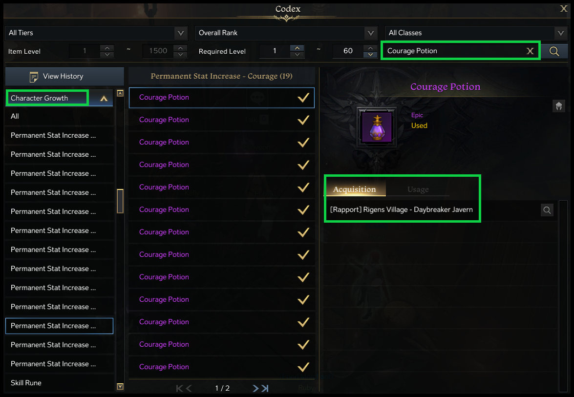 Players can use the Codex (Alt + D) to check acquisition methods of these potions and keep track of the ones that have already been obtained.