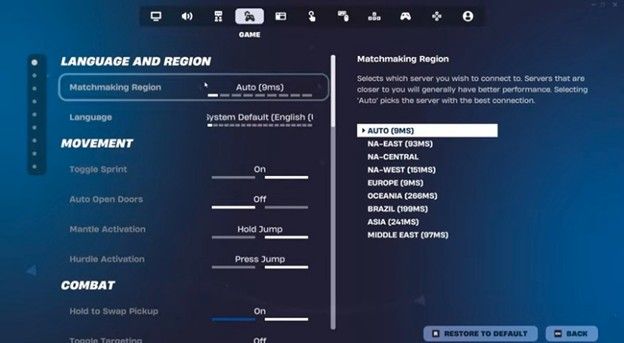Leaving it to auto is the best decision, as the game automatically detects the nearest server to your location and pairs you up. Since a shorter distance between you and the server equals better performance, this setting can help reduce the ping level. However, if you don’t trust Fortnite's Auto mode, manually select the server with the lowest “ms” and call it a day.