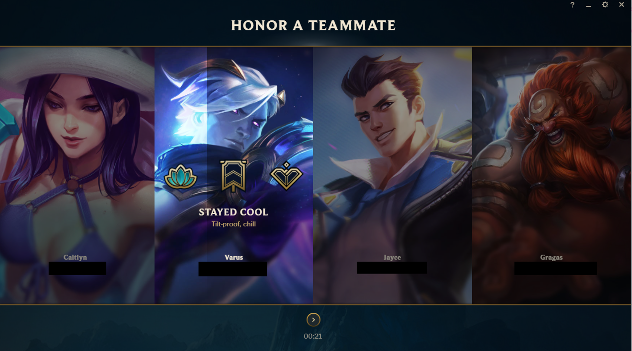 The easiest way to obtain that “tilt-proof” honor is to stay positive in the team chat, regardless of how dire the game situation is. Never use chat (or your pings) to flame your allies for their mistakes. Instead, focus on praising them for their outplays — tell them “good job” or “wp” if they land a killer skillshot or secure a game changing kill.