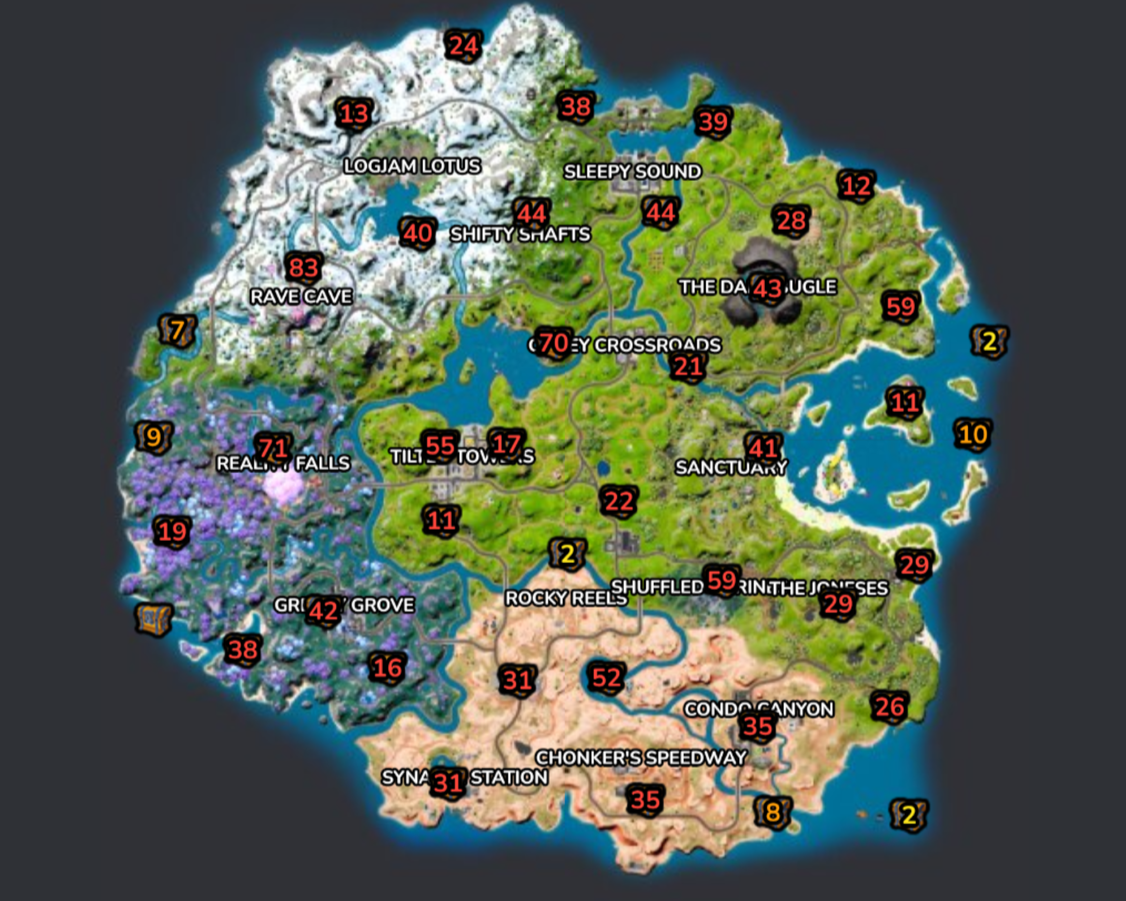 Our advice to you when you’re using Fortnite.gg to pick a Drop Spot is to pick a spot as quickly as possible. If you dissect the map too much, you’re never going to find where you want to go. Briefly look at some of the statistics of the spawn rates and quickly choose a spot on the map that you think could work or maybe even somewhere you might just think looks cool and try it out. Don’t overthink it too much!