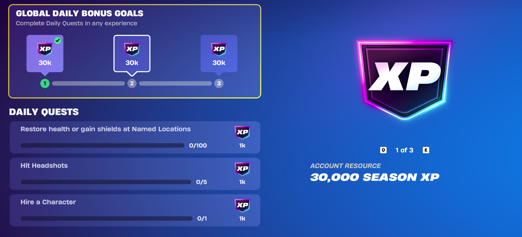 Daily quests are exactly what the name implies. These quests refresh every day, allowing you to come back and gain more XP each time you play (if you play daily, that is). What makes daily quests so efficient at leveling up your Battle Pass is the fact that they are extremely simple tasks, and in addition to the XP you obtain for completing a daily quest, you also get bonus XP for each daily you complete. However, daily quests do cap out at three per day, so once you finish, make sure you set your sights on another type of quest.