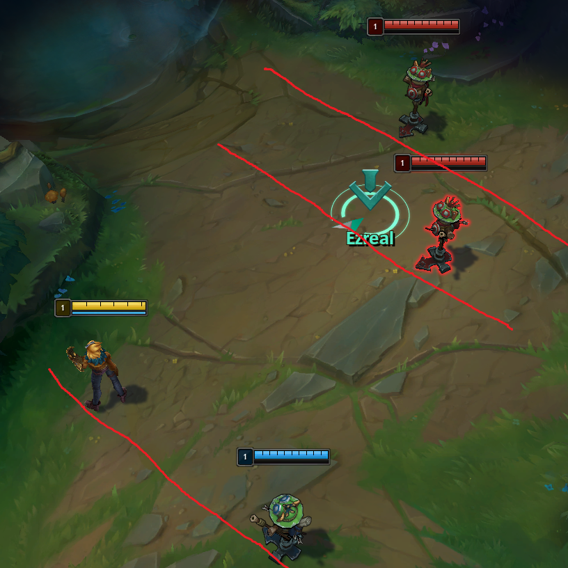 A lot of players in solo queue have very interesting positioning in bot lane to say the least. Sometimes you'll see bot lane ADCs positioning aggressively and forward to show their teammates they want to fight, but all it really does is put them out of position and make them vulnerable. Don't use positioning to communicate. One of the key aspects to good positioning in bot lane is to stay neutral with your partner. Staying neutral basically means that at any point during the laning phase, you should both be in line with each other. This means that if you fall back in lane, you fall back in lane together. If you want to move forward and play aggressively, you do it together. This keeps the lane as simple as possible and always keeps you in the best position to win fights or escape ganks together.