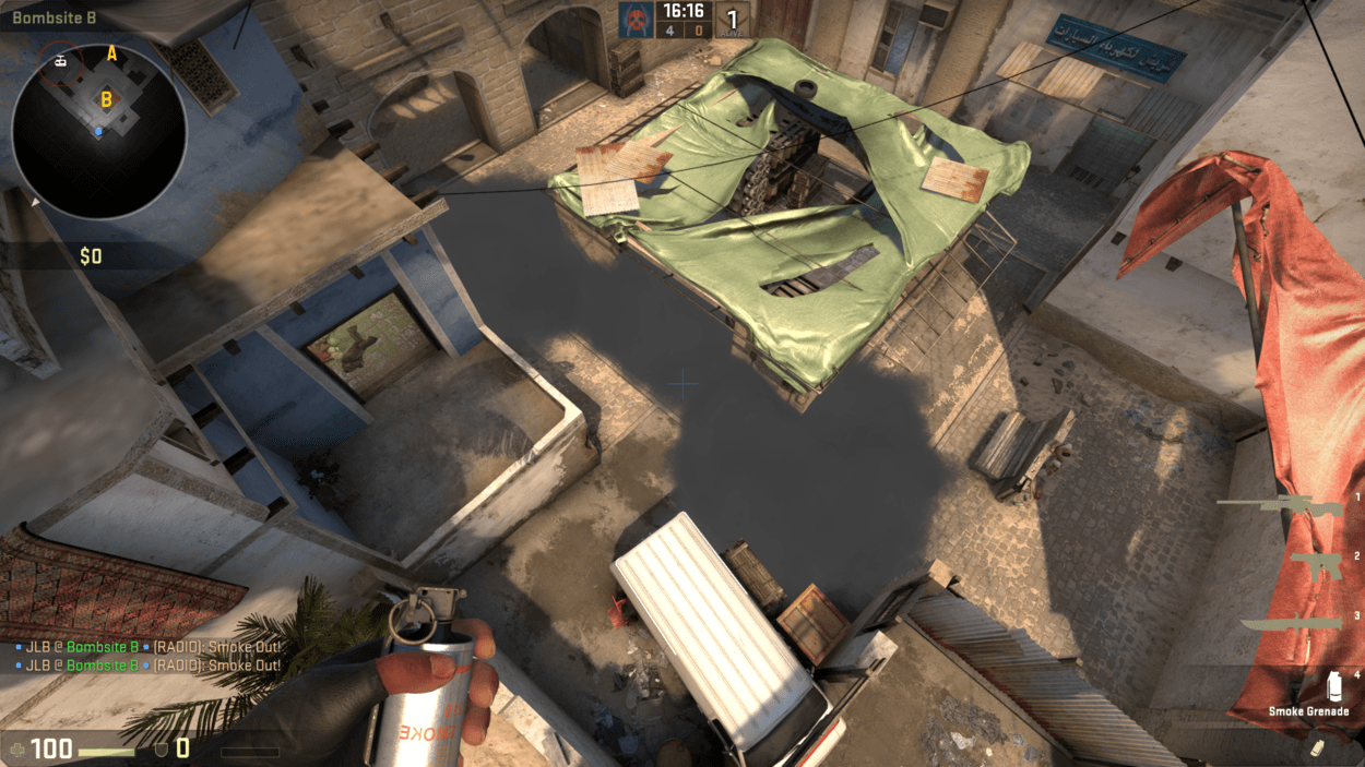 Again, just like the Bench smoke, just throw this smoke normally and it will land on the Bombsite, which will block the view of any counter-terrorist playing on the Bombsite while providing some cover for the planter.