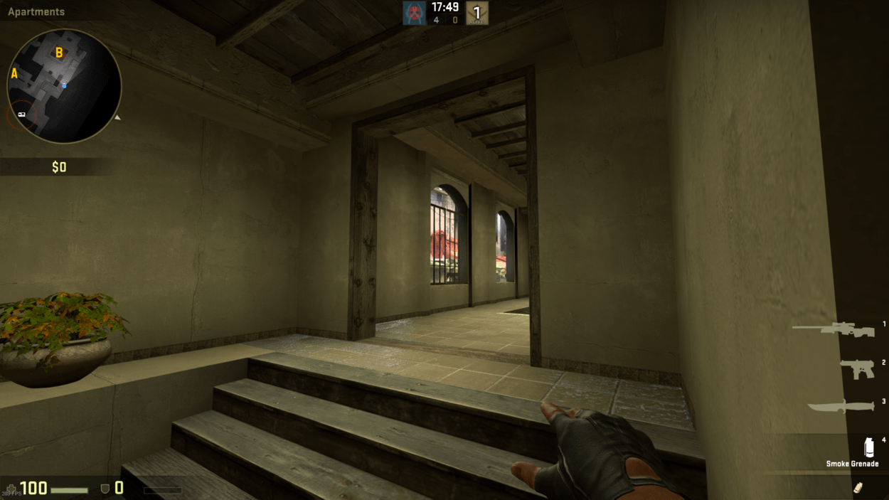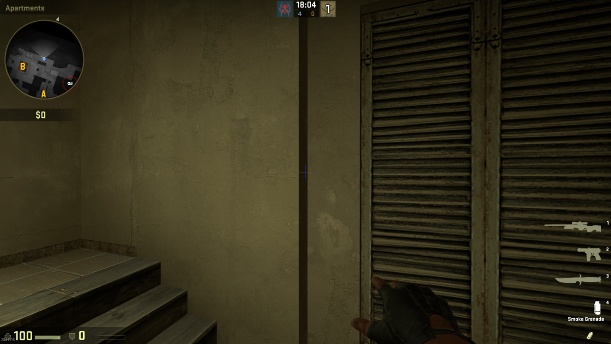 This last smoke is just slightly more complicated, but just as necessary as the other smokes since it prevents any players on Cat to gain any information. The first step is standing in this corner in the Apartment: