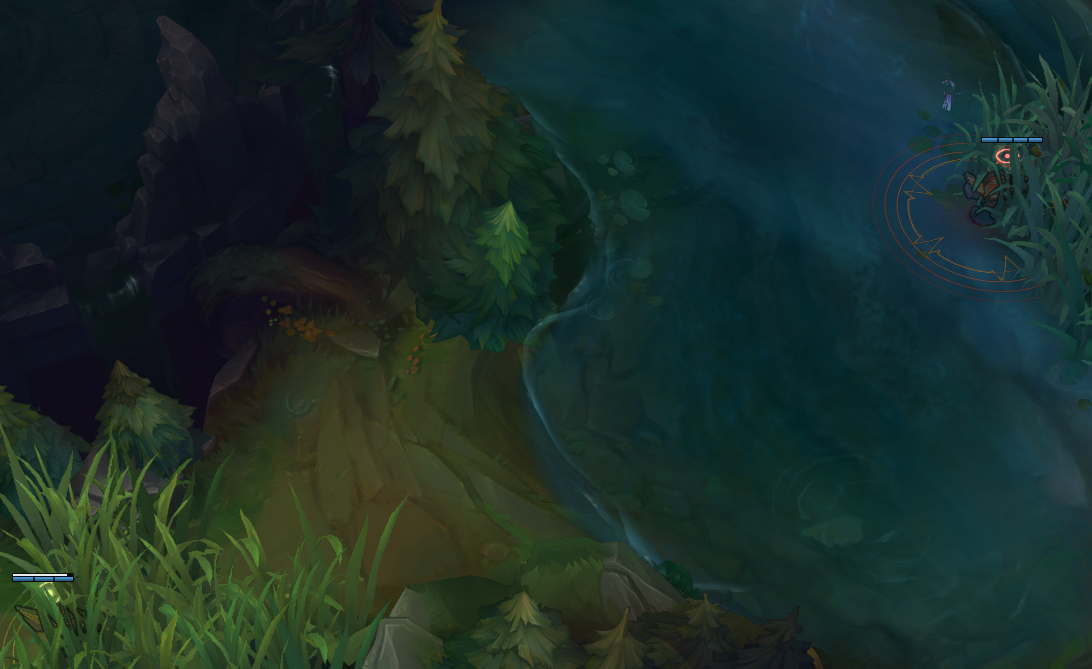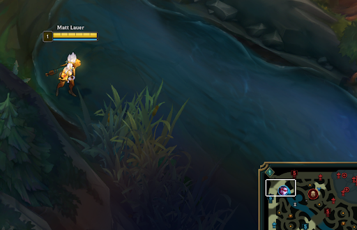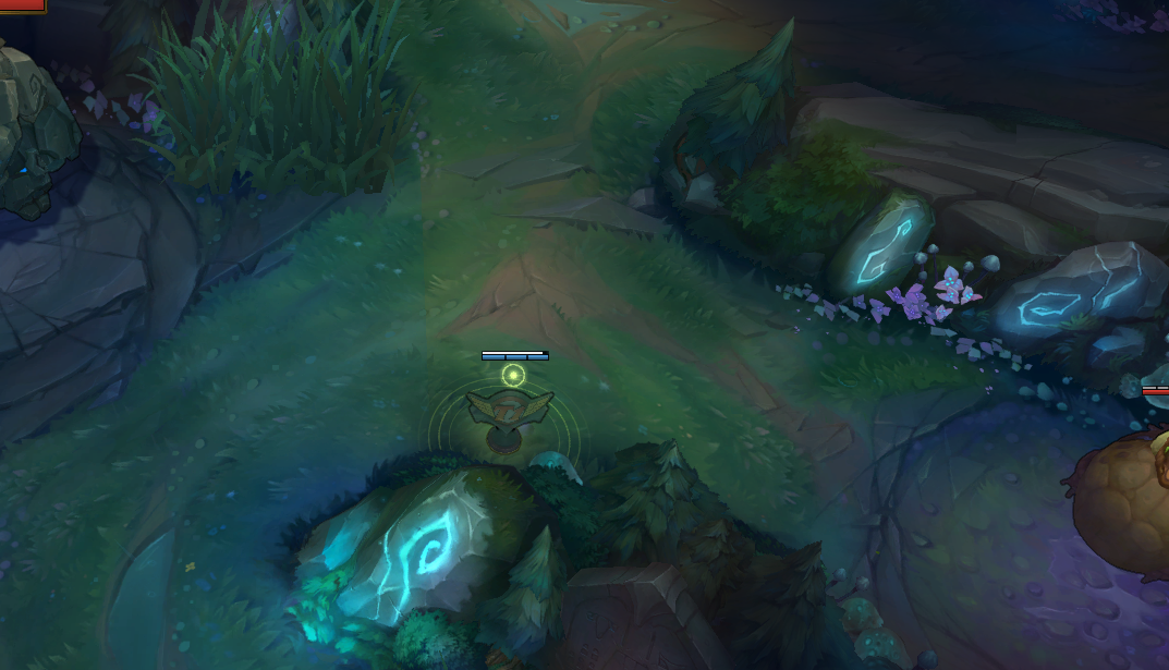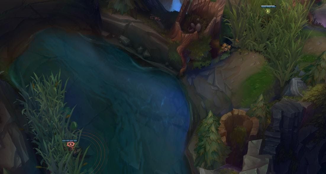 Another type of jungler is the invisible jungler (the worst…). Shaco, Evelyn, Kha’zix, and Rengar are all junglers that are potent in solo queue for their ability to stealth into your lane and assassinate you in an instant. Against junglers like these, it’s unfortunately not enough to ward in the standard positions. These junglers do share one thing in common that can be used to keep tabs on them though. None of these champions can clear their jungle while being invisible. Since that is the case, the best way to know where they are and what they are planning, is to ward between their jungle camps to see how they path between them. With that information, it is relatively easy to predict their next moves as they will always be pathing towards what they want to do next. Even more importantly, you’ll be able to see their health and mana pool to see if they even have the resources they will need to pull off a successful gank. If they are low on health, then you know that they aren’t really a threat.