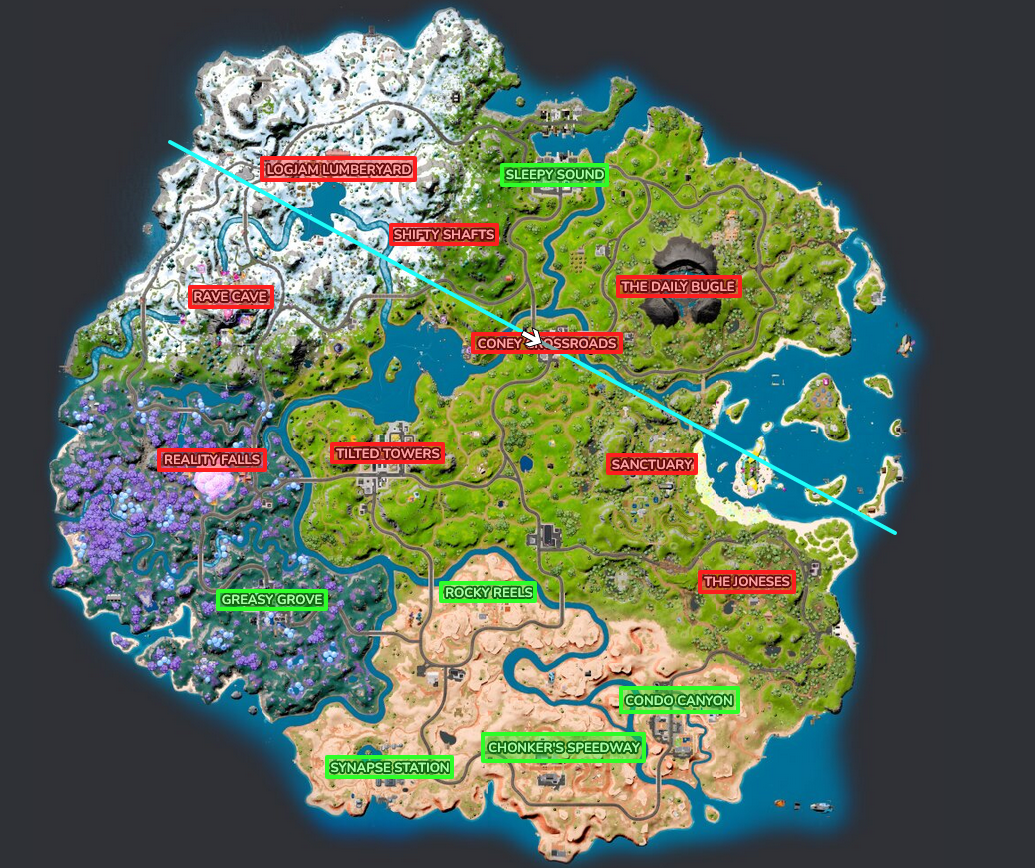 Avoid Hotdrops: These are locations on the map that tend to be highly contested. The first POI on the bus route is a hotdrop, with other popular spots being Rocky Reels, Tilted Towers, Rave Cave, Daily Bugle, and Reality Falls.