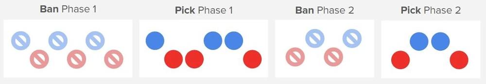 This makes the blue team get the first champion pick, while the red team has the advantages of choosing the first champion after the second round of bans and of having the last pick.