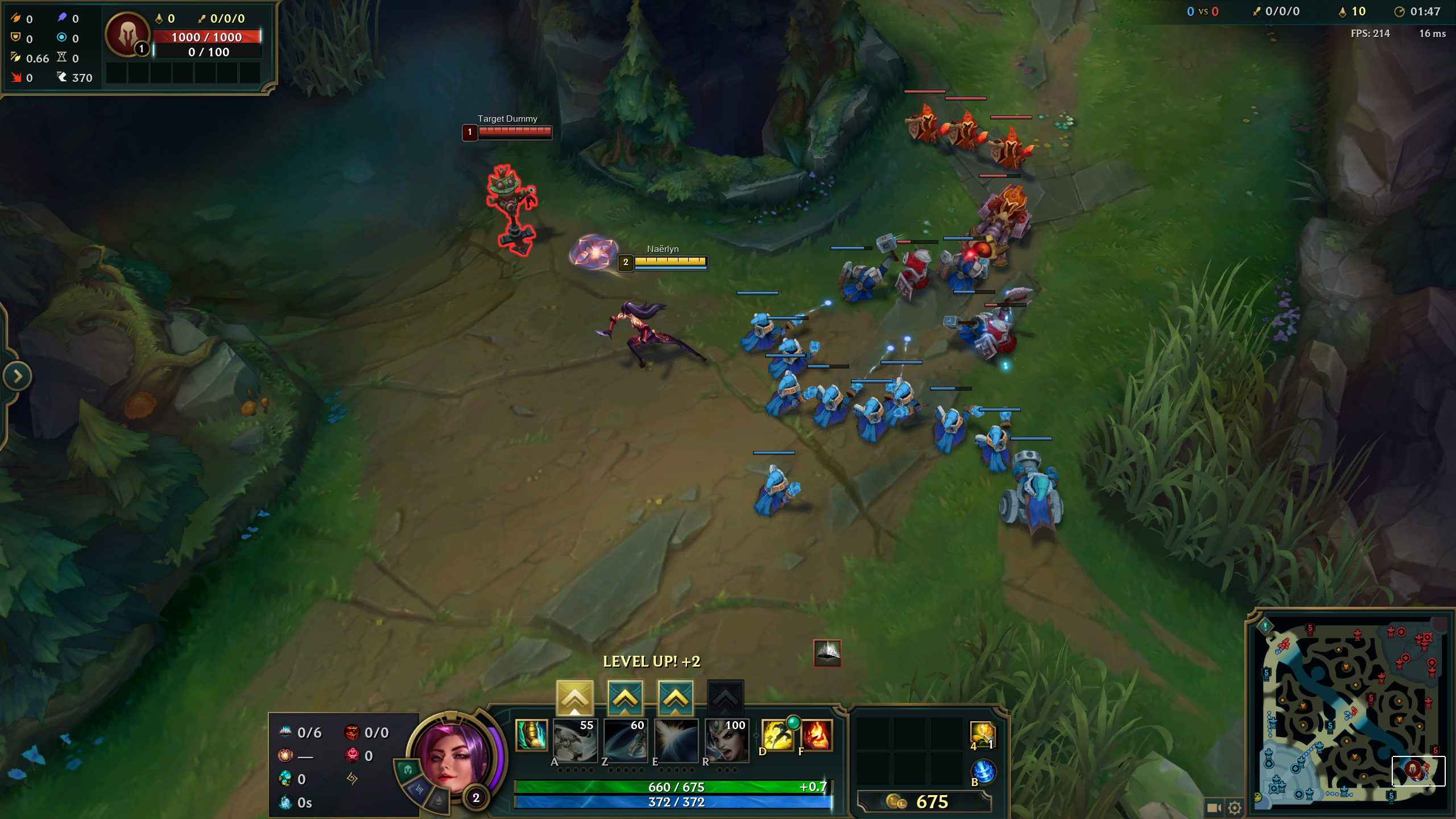 More precisely, we want to always have our basic attack ready when an allied minion is dying or about to die. Level 8 had as its goal to help us focus on when our minions would die in order to spot windows of opportunity in which we can sneak in an unpunishable attack. Level 9 aims to manually create such windows.