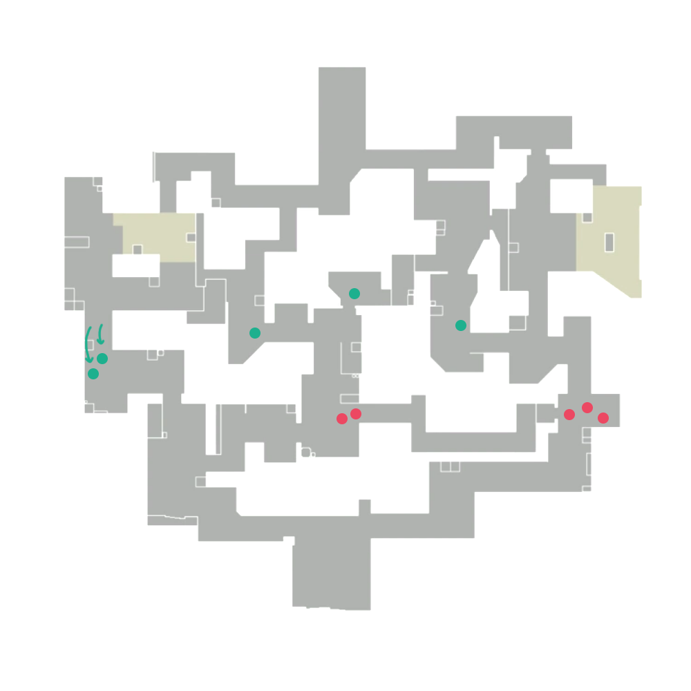 Since each lane is a path for attackers to get to a site, the more lanes the attackers control, the more options they have for executing due to uncertainty for defenders. On the other hand, the more lanes the defenders control, the less possible places the attackers might end up going. In most games, teams don’t try to take control of all lanes at the same time, as players/utility are spread thin. Instead, it is often more beneficial to effectively fight for a specific area together with utility combinations and gunplay.