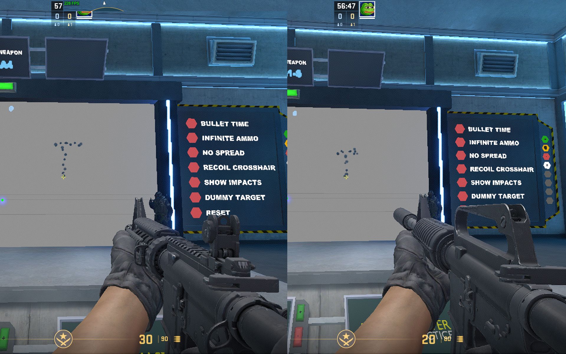 In this department, the M4A1-S is a clear winner. It has a tighter spread and is more forgiving while running and spraying. This means you will have an easier time landing your shots and controlling the recoil with the M4A1-S.