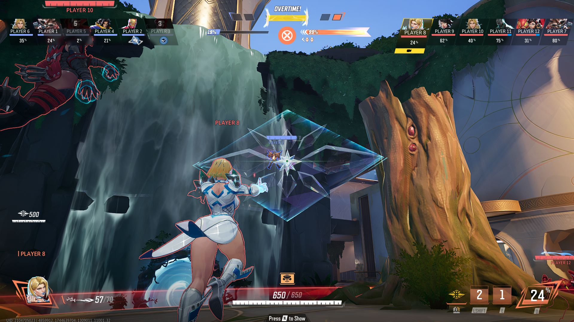 Emma Frost is the best Vanguard to deal with pesky flying characters. Throw a shield towards Iron-Man, Storm, and Johnny to force them away from their spots. Frost doesn’t have the best range, so your shield is your only defense against these unreachable enemies. But never let the shield break, as you can use it to block ultimates or to cover your escape.