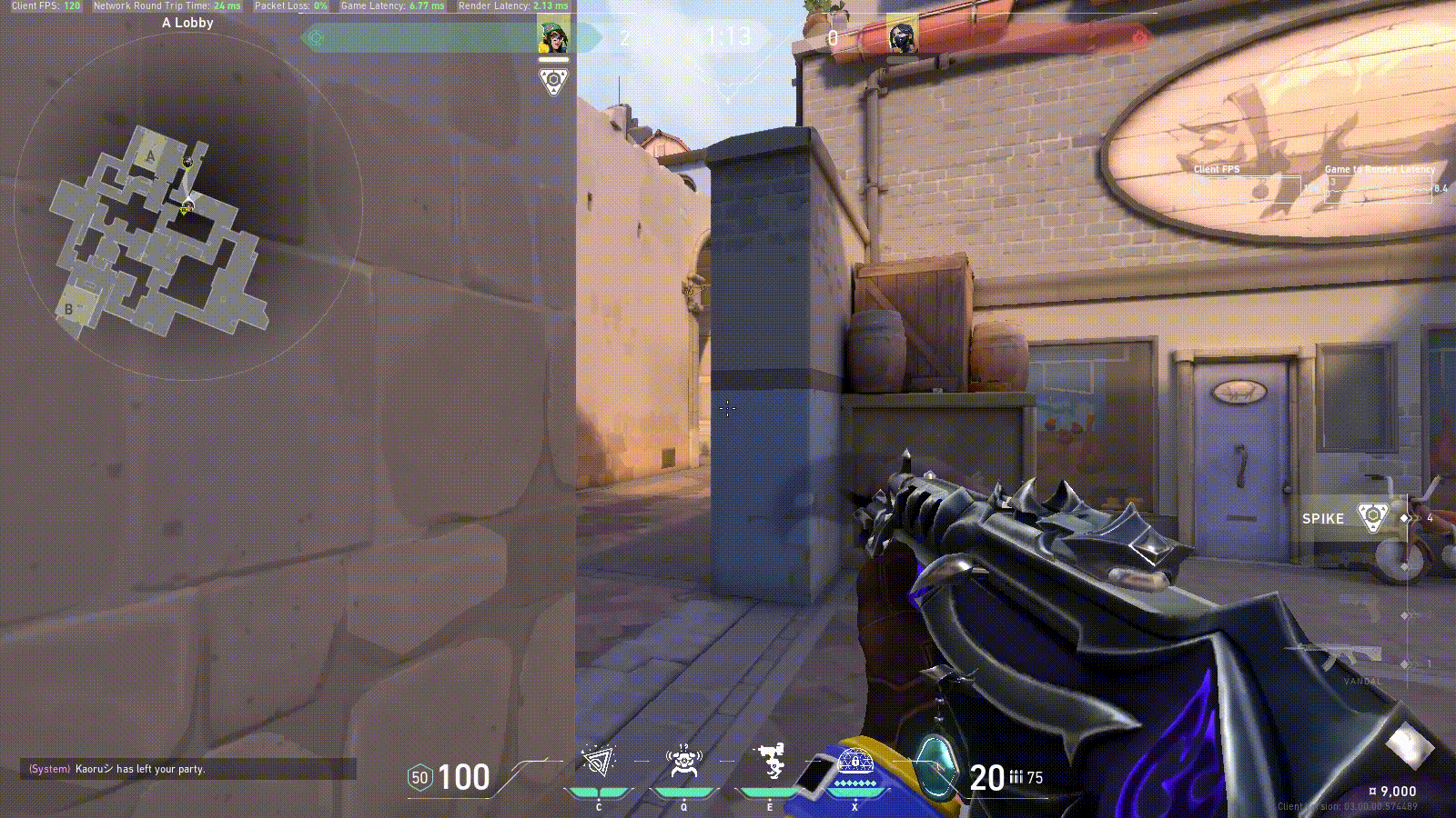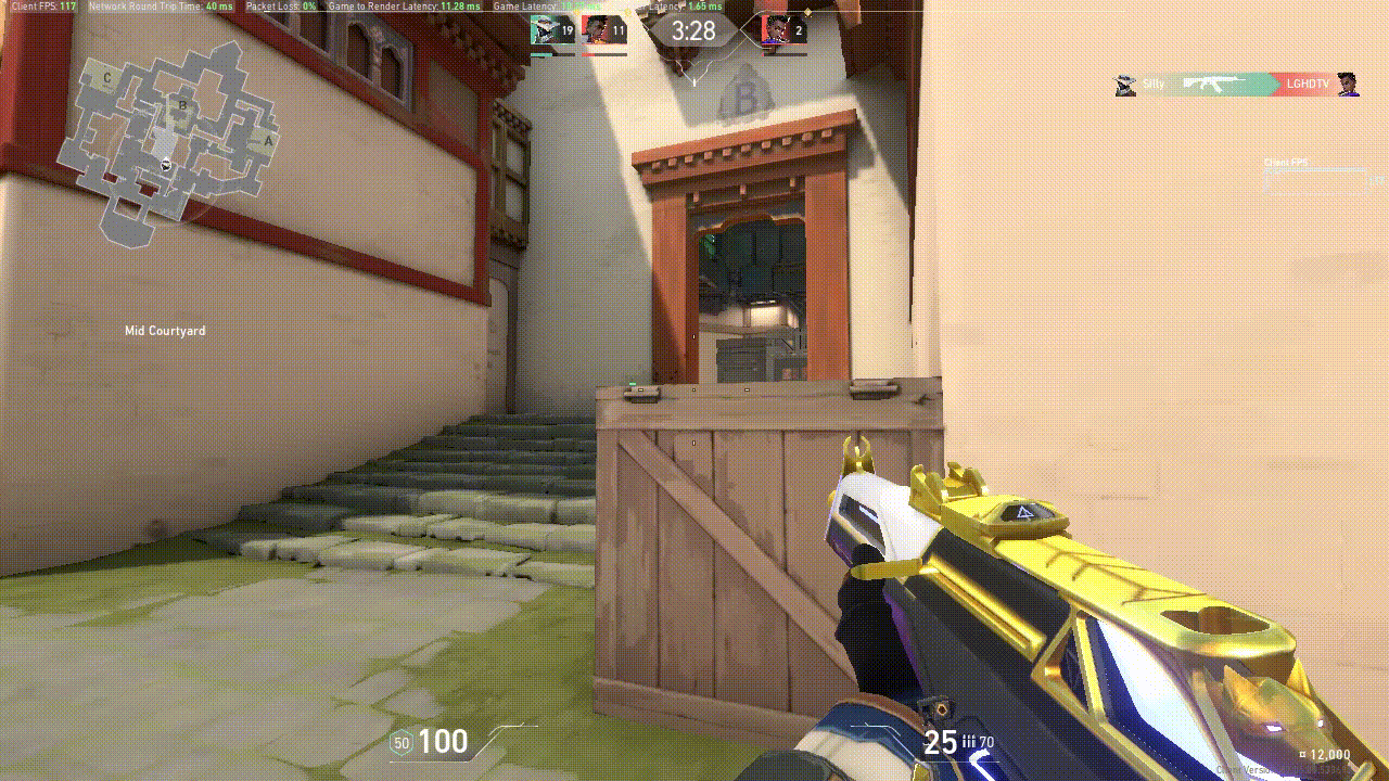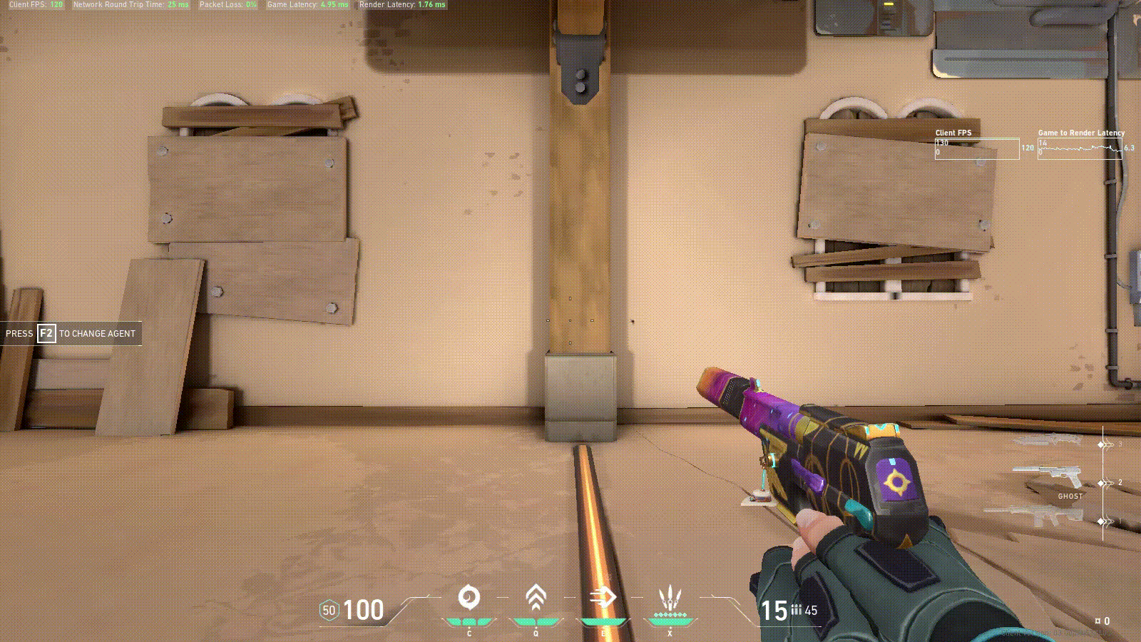 Now you can start working on hitting still targets and clearing angles using counterstrafes. For this use the Practice Range Spike Defusal on hard. Go through each angle that the bots can be and counterstrafe them with a jiggle. If there is a bot there, react and shoot. Practicing this can help you become accurate a bit faster and also let you go return to cover if you miss.