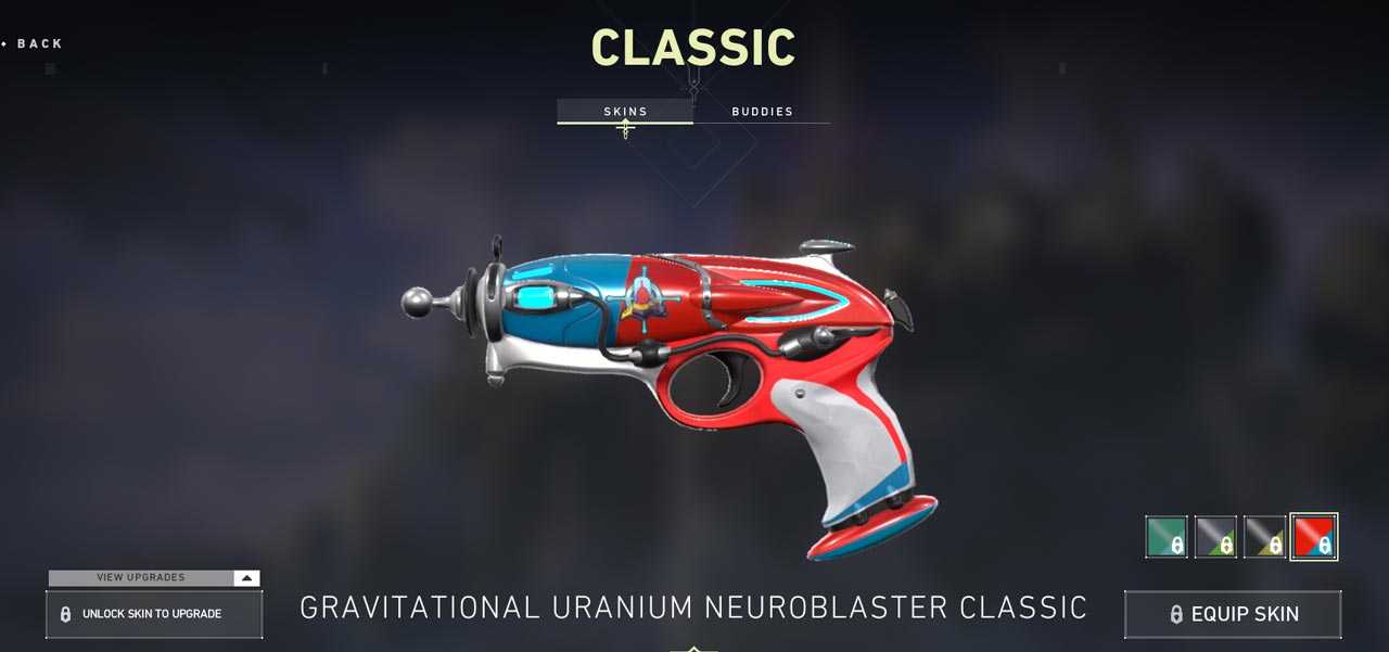 An underrated skin for the Classic pistol every player starts with at the beginning of a round is the Gravitational Uranium Neuroblaster Space skin set. Not many users have purchased the skin line, but the best use is on the Classic. It definitely gets buffed with its cool sound, but visually it’s a lot easier to control with its bright tracers.
