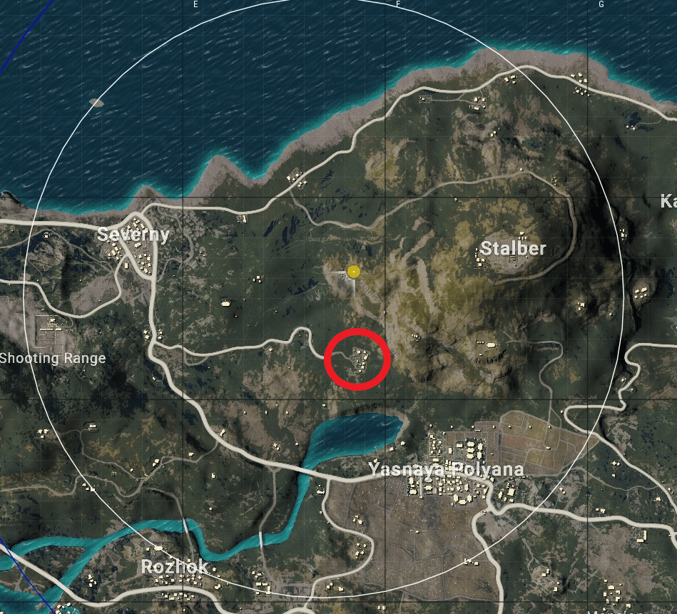 The position we mostly use is the centre of the circle - this position is very beneficial to have, but you should be prepared before you go there. Be sure that you have enough loot and preferably three players to camp the central compounds. It's such a good position because the circle will almost always be close to the centre and teams will fight for the compound you're in - and since it's general knowledge defending is advantageous in PUBG, it can't really go wrong.
