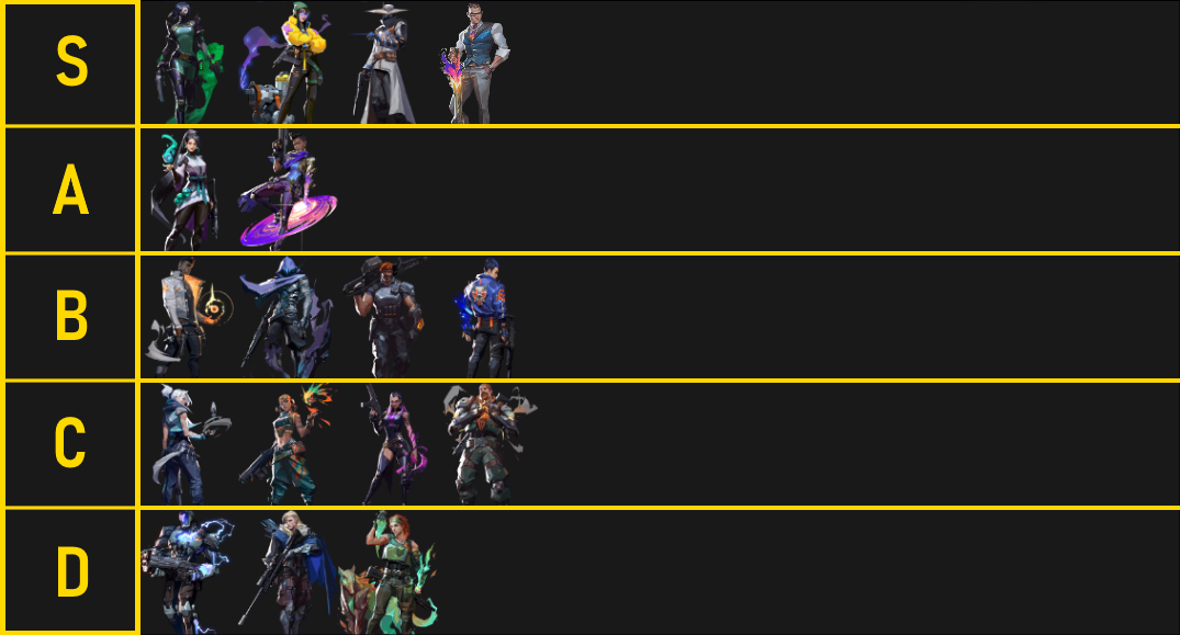 Here is a tier list to show how good an agent is at lurking that you can use! Please note, Chamber’s place is just speculation based on more limited information, but from what I’ve seen, he seems like a strong lurker.