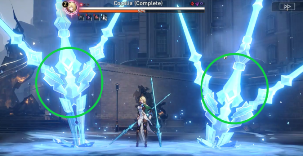 Cocolia periodically summons two Ice Edges through ‘Omen of Everlasting Freeze’, with each dealing an instance of AoE Ice damage each turn. The damage is initially low but ramps up throughout the fight due to Intensifying Cold, becoming quite an annoyance in Phase III. Players should be able to passively kill them with AoE damage from Serval, Trailblazer, and Asta.