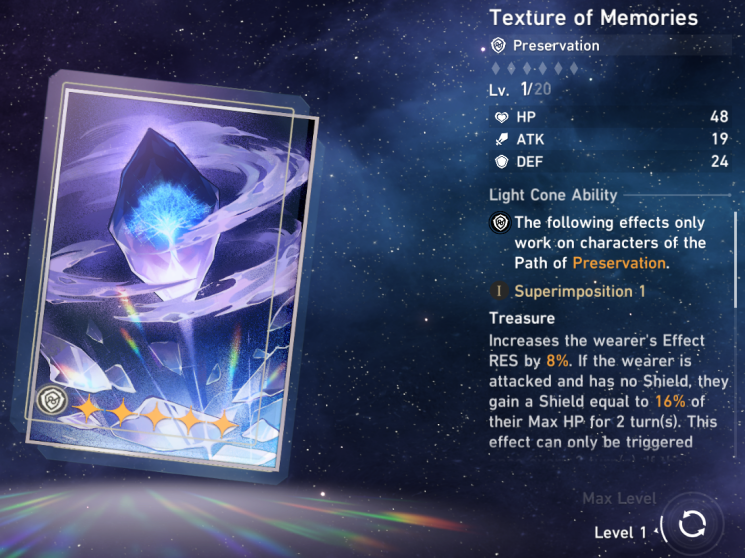 Preservation Trailblazer: For Preservation Light Cones, players can choose between 5-star ‘Texture of Memories’ or 4-star ‘We Are Wildfire’. Texture of Memories can be bought from Herta’s Store and works well with Trailblazer’s Taunt Skill, increasing their tankiness when taking hard hitting abilities. Being a 5-star, Texture of Memories also provides higher Defense stats, contributing to Trailblazer’s team shielding value.