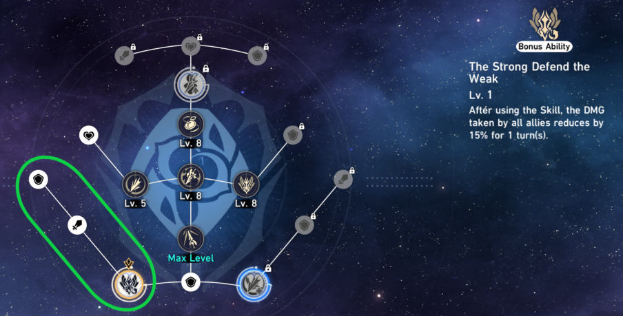 Once characters and Light Cones have been leveled up, the next priority should be Traces. These provide a significant power boost and, unlike Relics, are not subject to the whims of RNG. It's a good idea to unlock each character's Bonus Ability, as the effects can be quite strong and the nodes after it offer worthwhile stat bonuses. There's no need to invest in tiers that require ‘Tracks of Destiny’; just focus on the tier that requires only Echo of War materials for now.