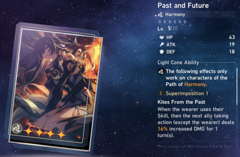 Asta: Besides 3-star options, ‘Past and Future’ is currently the only free 4-star Light Cone available. It is rewarded from Jeweler’s Pagoda in Central Starskiff Haven and purchasable from Light Cone Manifest. Past and Future has a decent damage buff, but its target can be challenging to manipulate without proper turn setup from Relics.