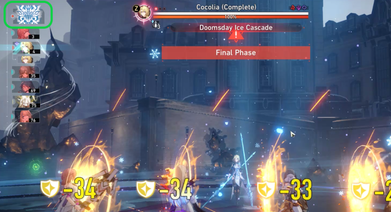 At the start of Phase II, Cocolia summons Bronya to fight alongside her. Bronya has the ability to buff Cocolia’s damage and forward Cocolia to the top of the Action Order. Players on a lower Equilibrium Level should prioritize taking down Bronya, as her abilities can be challenging to deal with in Phase III if left unchecked. On the other hand, Players with a higher-level team can opt to cleave her down while focusing solely on Cocolia. Like Ice Edges, Bronya will also benefit from Intensifying Cold.