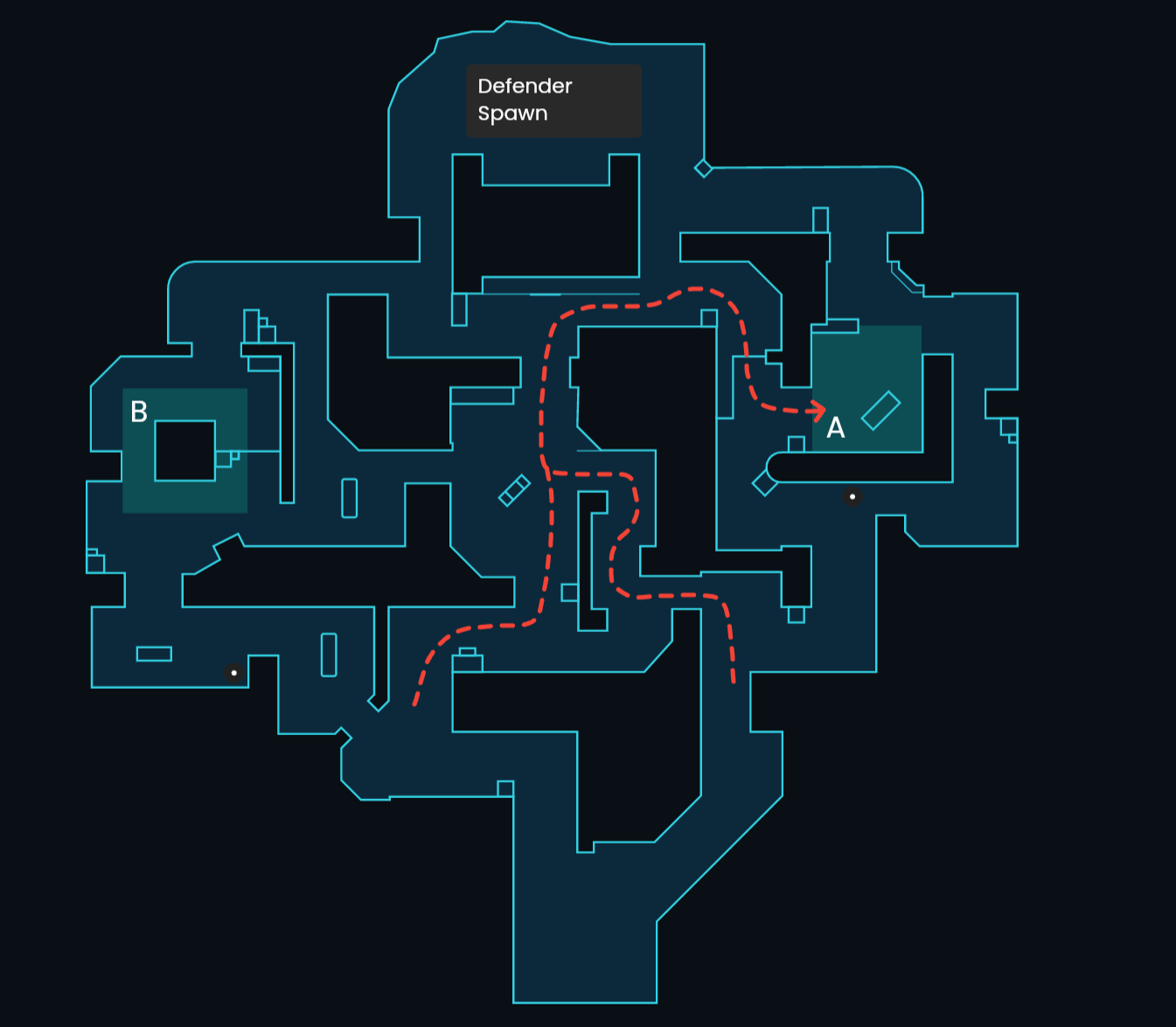 Going Mid to A would be dangerously close to Defender’s Spawn and, in most cases, an unnecessary trek Attackers shouldn’t be making.