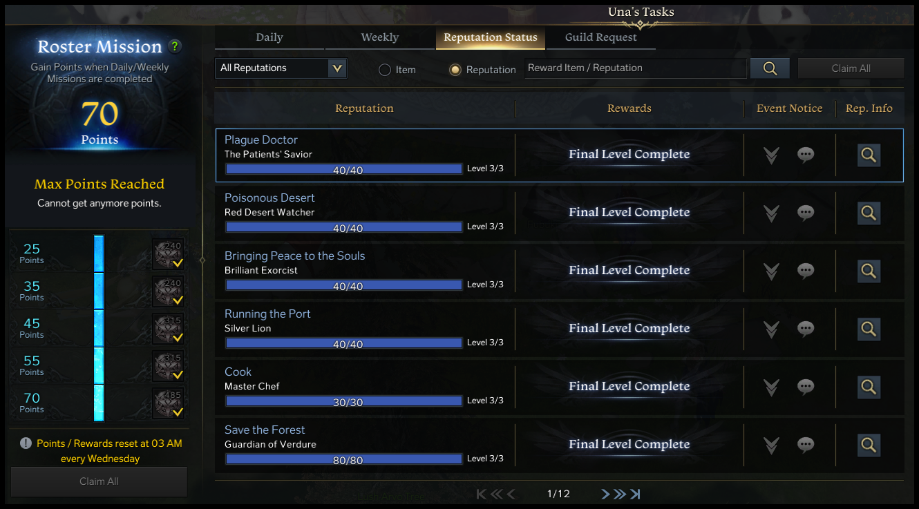 Alts can also help speed up progress on various Una’s Reputations. Many important rewards are locked behind Reputations, which are time gated by Daily Una’s Tasks. A single character may only work on three Reputations each day, meaning it may take months for players to achieve their goals. With multiple characters, various Reputations may be worked on simultaneously while also allowing the main character to focus on dailies that reward Leapstones.