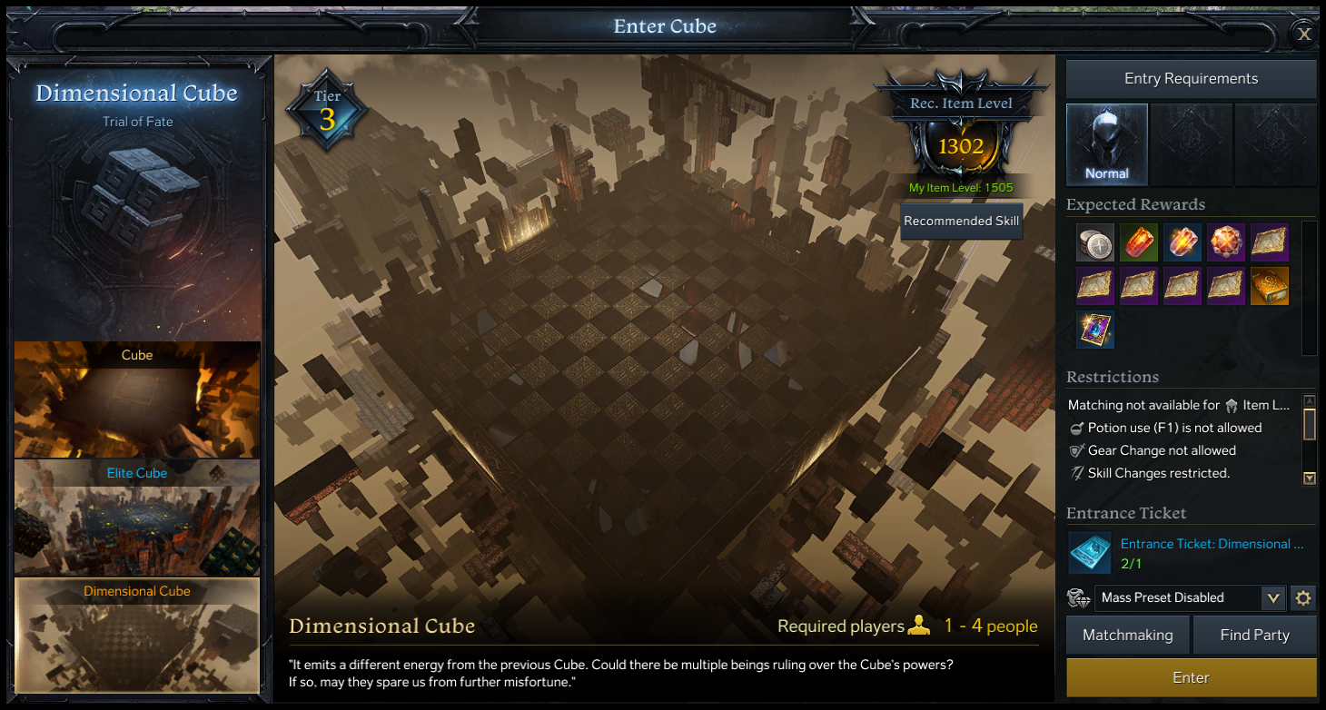 Cube is also a great source of silver, depending on the level of chests that players reach. Cube Entrance Tickets have a chance of dropping from the end boss on the second floor of Chaos Dungeons (with Aura of Resonance). Tickets may also have a chance of appearing in Entrance Ticket Chests, sold by Sylmael Bloodstone Exchange NPCs. If tickets do not drop from the chests, silver is rewarded instead. Each character may exchange for three chests of each Tier every week, as long as their Guild level is high enough. Reaching Diamond Chest in a Dimensional Cube (Tier 3) gives around 80,000 silver. There is also a chance that players may run into a ‘Lucky Stage’ during the Cube, which may grant additional silver. These can be quite tedious to run so it is suggested to wait and run with x3 tickets or dispatch them for slightly fewer rewards.