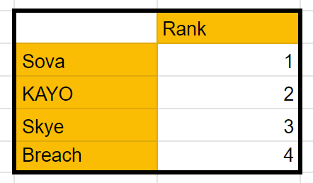 With the second year of the VALORANT Champions Tour in full swing, we have seen many new agents arise past the original 10 agents in Valorant’s Beta. With new powerhouses like Astra and Skye, it is not uncommon to see teams forgo the OGs and stroll into matches with the new additions to the agent pool. With all the regional circuits and affiliated tournaments, it begs the question: which agent is the best agent? The result of this question manufactured a fun little experiment that uses readily available data to rank the current agents in the game.