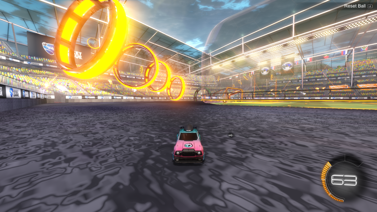 The flying rings are like Lethamyr’s version, yet admittedly not as polished. The rings weave around the entire arena giving you a solid car control warmup before moving on to other parts of the training ground. The map doesn’t reset you if you fall but it still serves as a decent way to get more comfortable in the air.