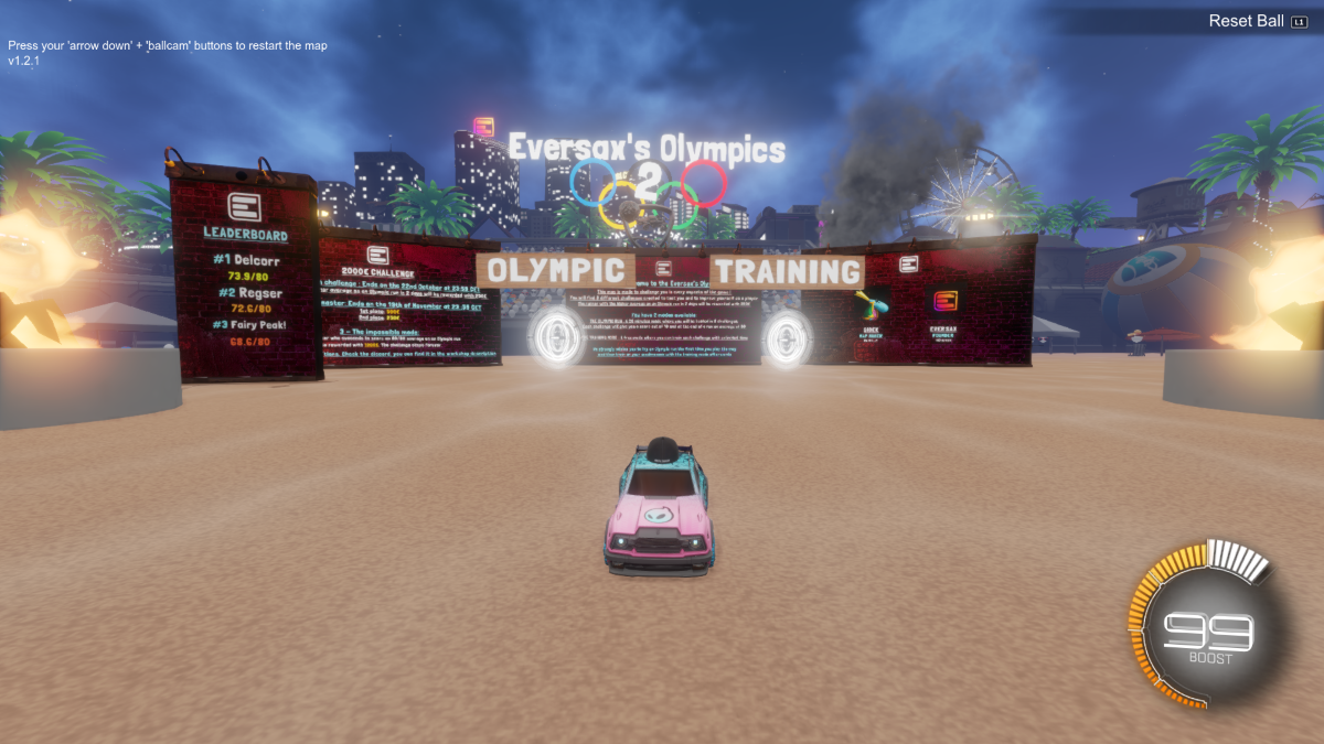 Eversax has created a fun and competitive test of all-around Rocket League skill. The Olympic custom map offers the perfect blend of challenge and enjoyment, giving players a chance to reach their limits while having a great time. If you want to try the map for yourself you can subscribe to it here: https://steamcommunity.com/sharedfiles/filedetails/?id=3055773601.