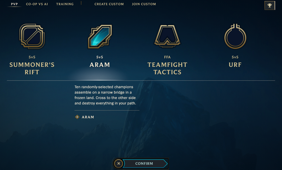 As ARAM is more of a fun game mode rather than a competitive mode, players are also typically less toxic. In other words, it’s a great way to get your friend to experience some PVP without being exposed to the harsh, toxic darkness lurking underneath the Rift’s colorful façade.