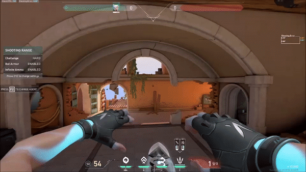 One area of the Range that is lacking is that there is no unpredictability with bots. In typical games, you will often have to peek into angles with no information. With the Range, you always know where a bot spawns as you go to shoot it. To counteract this, we can play the Eliminate 50/100 challenge while using a Sage Wall to block our line of sight. This way, we can peek out and isolate bot 1v1s, similar to how we would do in a real situation. It’s best to keep bot strafing on, so you will be unable to predict a bot’s exact location.