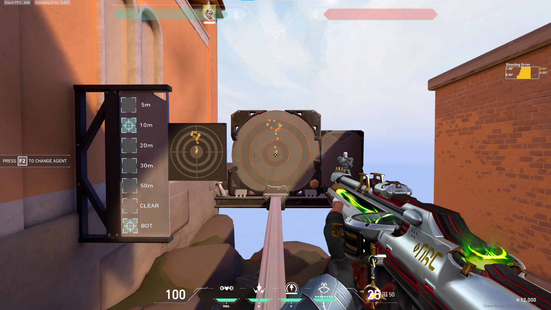 Then, you can try to think about counteracting that pattern with your hand. Start by trying to get a perfect spray with the first 10-15 bullets at 5m (no need to spray after that many bullets). After this, you can progress to 10m, then 20m. A good indication of having proper spray is being able to hit 13-17 headshots on the invulnerable bot at 20m with a single Vandal/Phantom clip!