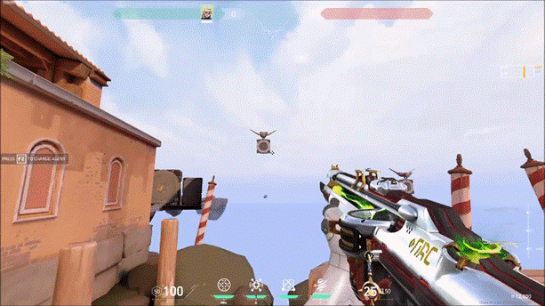 You can actually access a part of the ceiling that is open using any agent with vertical movement. If you use Jett, you can also use her Jett knives for a simulated version of typical small dot aim trainer tasks, focusing on accuracy and switching from target head to target head.