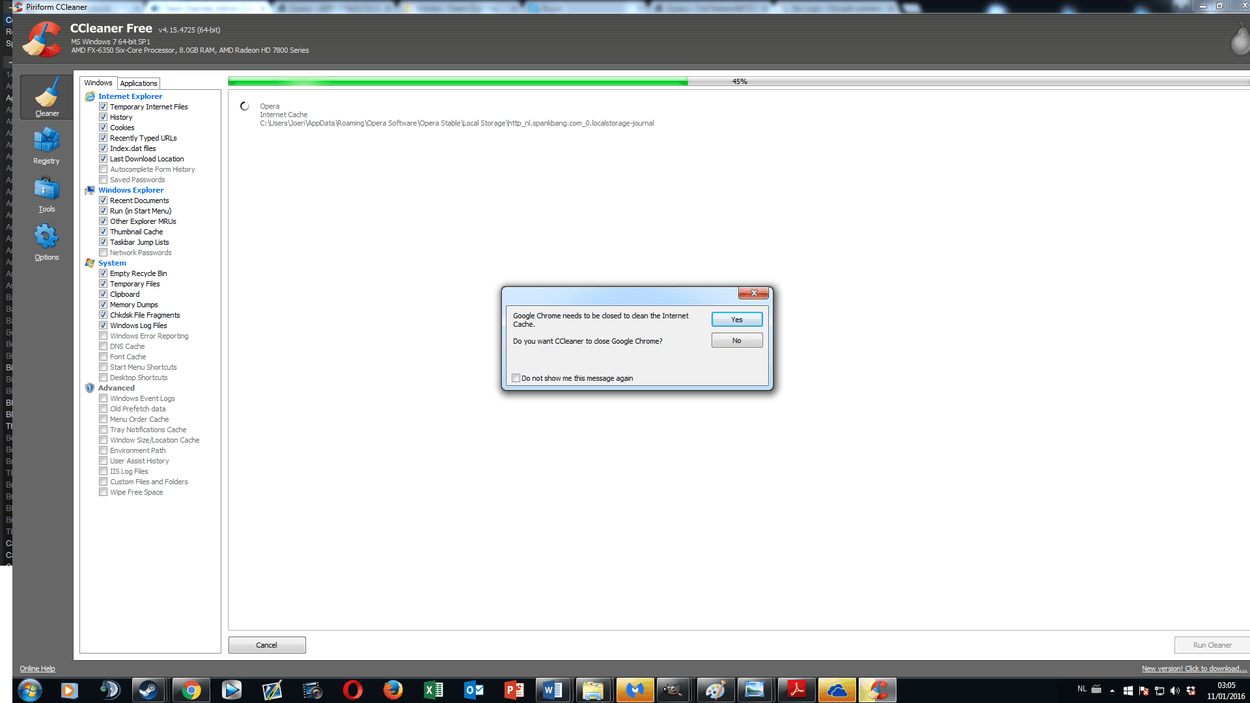 Use CCleaner or any other cleaning software to rid your pc of unnecessary (temporary) files and wasted space. You can select which cookies you want to keep (like YouTube, Facebook etcetera) and you can scan and delete the rest. Registry Cleaning is optional as it doesn’t do anything FPS-wise. It is recommended to perform a full system clean every week or so.