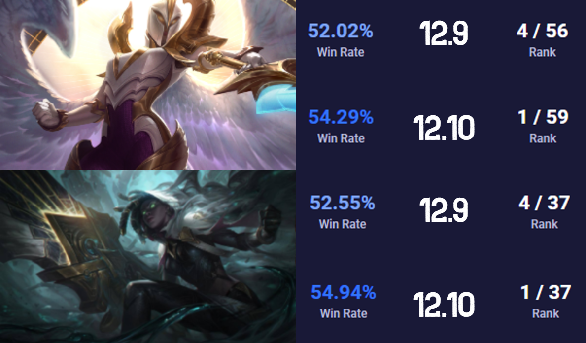 Cursory analysis immediately indicated that hyperscaling champions like Kayle and Senna would do incredibly well on this patch – they’re not the only ones, but they’re the easiest to pick out. The only nerfs that attempted to balance these champions were in the vein of in-kit healing and shielding, with no specific changes to deal with the fact their early game vulnerability is now much harder to exploit. They both reach levels of damage where the Durability Package means nothing, and they can now reach those levels far more consistently. Both champions were #4 in their roles prior to the patch (Senna has been primarily a support since changes in 10.3), and had their win rates jump by 2% to take them to #1 in their roles. Because of this, the hotfix nerfs announced a couple days after the patch launch immediately addressed these two (among others).