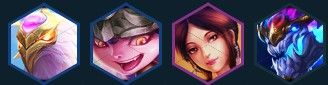 Revel champions are composed of Tahm Kench, Jinx, Sona, and Corki.