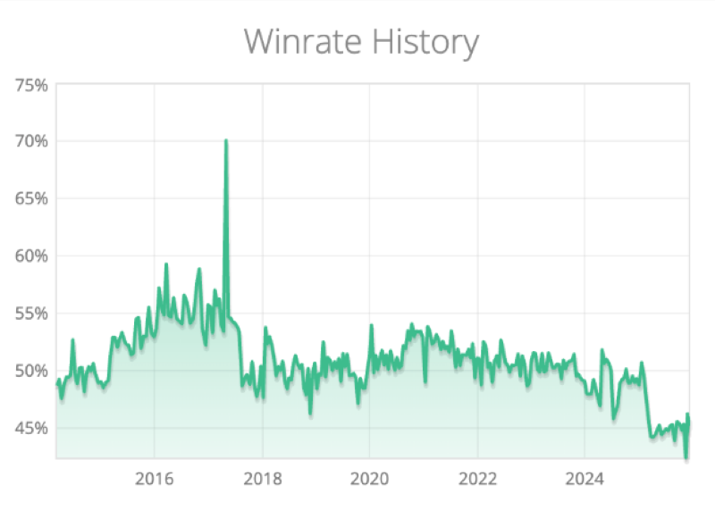 Skarner in particular was reworked to give more sustain, movement speed, and attack speed in the Jungle through the introduction of his crystal spires. These could be captured by him or his team and gave a massive power boost to Skarner while in it. He became an objective-control monster that had insane teamfight presence over different areas of the map. His early game skirmishing was unmatched, and the additional stats the spires gave him made ganking easy as well. During this time, Skarner had one of the highest win rates of all time in Solo Queue, sitting at an astonishing 65% win rate. Riot would eventually tone down his early game power and stats over the next few patches, but players back then remember how insane this Champion really was. The graph below is of Skarner's win rate over the last 10 years and puts into perspective how crazy this time was for the Champion.