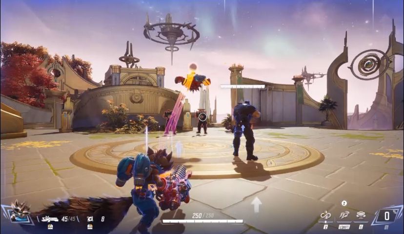 Rocket doesn’t just handle things himself, but boosts his team as well. With his Ultimate triggered, all the teammates within his zone’s premises get a 40% damage boost and a significant health shield bonus of 100/s. All of this happens thanks to a cosmic yarn amplifier, which Raccoon deploys to charge the allies.