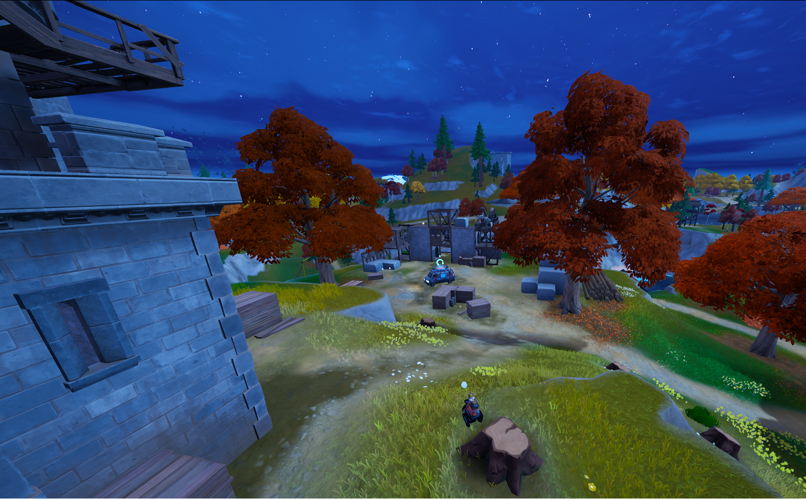 Far west of The Citadel, you’ll find a quaint castle atop a waterfront cliff, a landmark known as “Royal Run.” This location offers many enticing items and amenities, making it an excellent solo drop spot. Inside the castle, you will find Guardian and Holo chests and a few Slurp barrels to utilize for shield once you land. Along the waterfront, you will find rocks and stacks of wood to harvest, a vending machine that varies by game, and a boat in case you need to make a quick getaway. Along the bridge and the area leading up to the castle, you will find plenty of lumber to harvest, more chests, and motorbikes to swiftly reach the next zone circle.